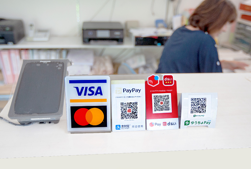 現金はもちろん、銀行振込、各種クレジットカードおよびキャッシュレス決済にも対応しています。