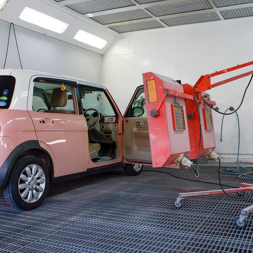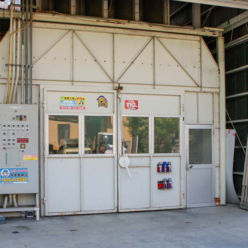 塗装室。大型のクルマも塗装可能な広さを確保。
